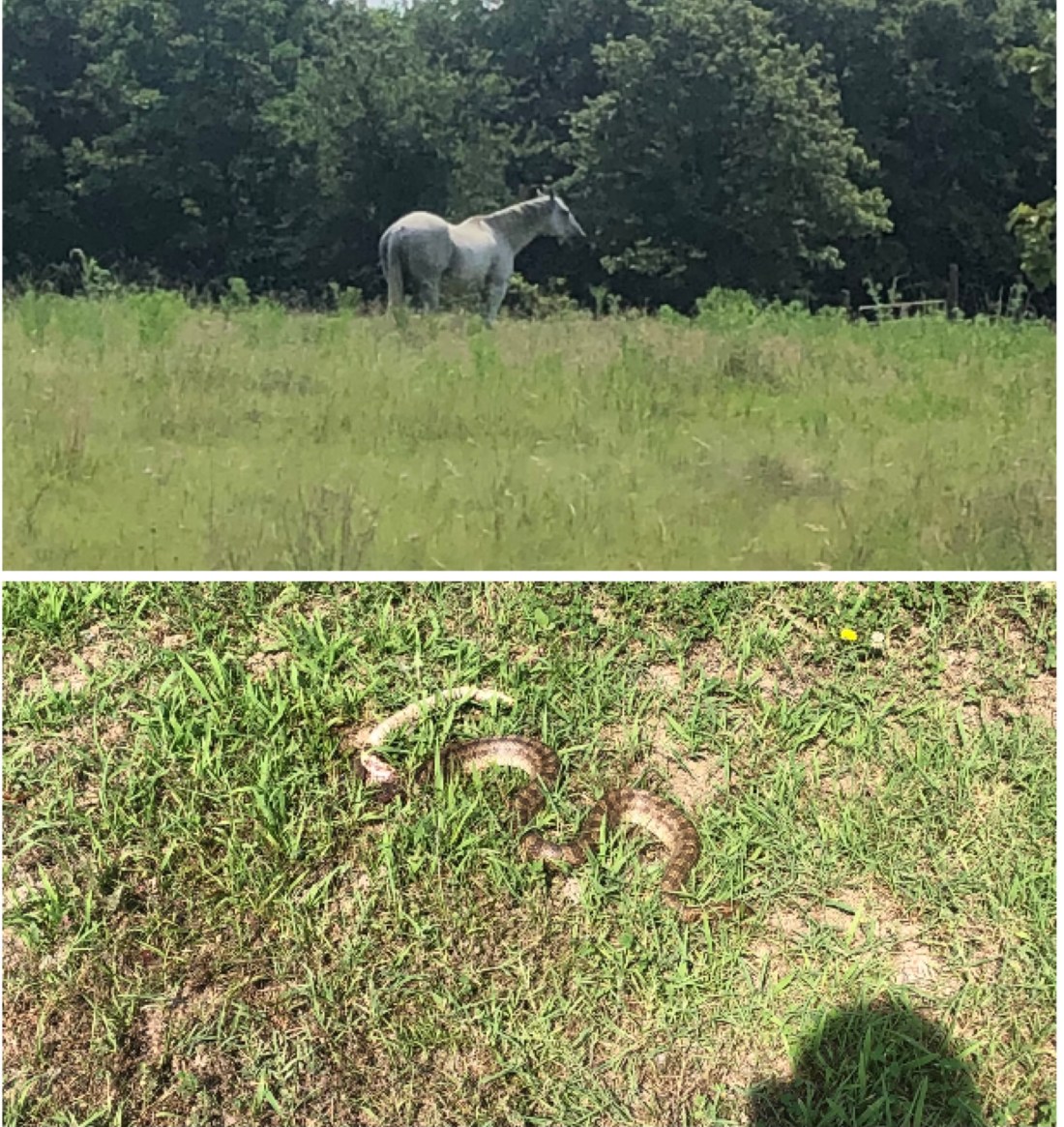 I continued on my walk and was so shaken and excited about what had happened. Suddenly, I saw a snake on the ground at the bottom of the hill. Startled, I jumped. But then I realized the snake was not only dead, but it’s head was cut off. I felt the spiritual connotations of this moment and as they were still sinking in, I arrived at the top of the hill and saw a beautiful white horse that I had never seen before. I felt God’s presence all over this. Think of it, a dead snake at the bottom of the hill and a beautiful white horse at the top!! If that wasn’t a message from God, then I don’t know what is.